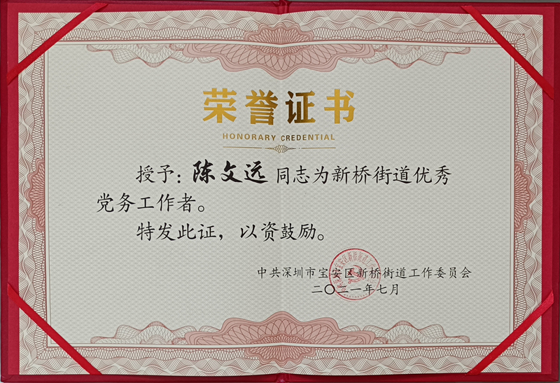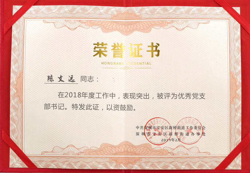 2018寶安區(qū)新橋街道優(yōu)秀黨支部書記
