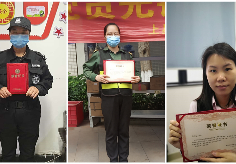 根據(jù)征集到的材料,結(jié)合投票和領(lǐng)導(dǎo)評選,婦女節(jié)“最美戰(zhàn)疫逆行者”主題活動的獲獎名單出爐,前5名依次為:沙頭管理處保安史軍華、星悅豪庭管理處保安李冬梅、盛芳園管理處客服郭華容、麒麟花園管理處保安李鳳荷、總辦品質(zhì)部主管鄧亞蘭。公司已為獲獎員工發(fā)放榮譽證書,并根據(jù)個人需求購買和發(fā)放相應(yīng)的獎品。同時,對每一位參與者,我們都贈送精美小禮品,感謝你們的積極參與! 無疫小區(qū)的背后,是眾多物業(yè)人的辛勤付出,是一滴又一滴的水,匯聚成了浩蕩海洋,是一顆又一顆的星,集結(jié)成了璀璨星河。本次活動由于時間有限,未能對每一位出色的員工進(jìn)行詳細(xì)報道,也有部分員工因為太忙碌未能及時報名參與。但我們深知,在這場沒有硝煙的疫情防控戰(zhàn)中,你們付出良多。在此,向大家道一聲:“謝謝你們,辛苦了!”是你們沖鋒向前,守住了小區(qū)的第一道防線;是你們暖心服務(wù),為鴻運物業(yè)這張名片再添光彩。