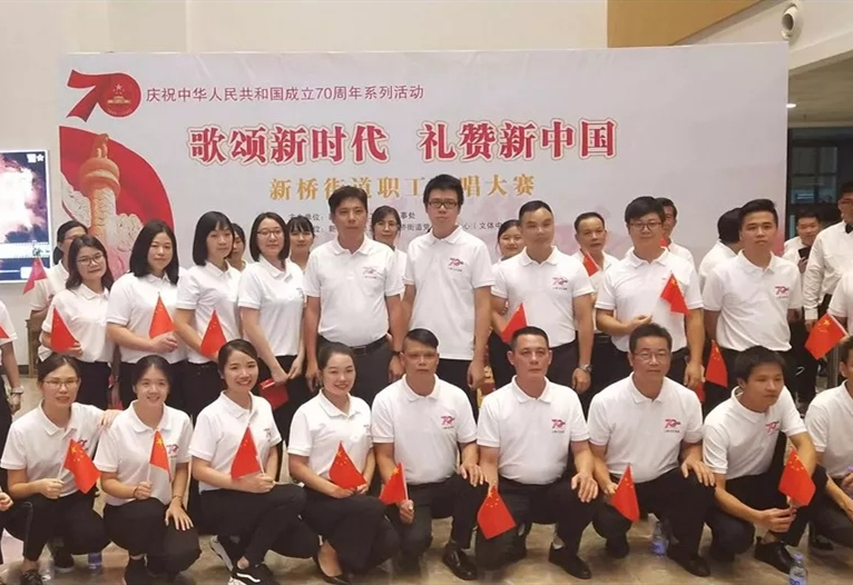 時光如水,歲月如歌,祖國70周年華誕即將到來,為強化愛國之志、激勵愛國之情,新橋街道“歌頌新時代·禮贊新中國”職工大合唱比賽,于9月27日晚上19:30,在新橋文化藝術(shù)中心大劇院圓滿舉行。上星工作站攜手鴻運物業(yè)28名員工,組成上星合唱隊,代表上星社區(qū)參加了此次合唱比賽,現(xiàn)場演唱“我的中國心”“歌聲與微笑”兩首曲目,最終斬獲佳績,贏得銅獎。 上臺后,大家抬頭挺胸,手舉國旗于心口,現(xiàn)場莊嚴肅穆,隨著“我的中國心”前奏響起,隊員們凝神屏氣,將滿腔的愛國熱情融入曲目的演唱中。唱完,現(xiàn)場掌聲雷動。改編后的“歌聲與微笑”節(jié)奏更加的輕快、靈動,大家活潑的演唱風(fēng)格、燦爛的微笑,將現(xiàn)場氛圍帶到了頂點,臺下觀眾紛紛跟著節(jié)拍揮舞熒光棒。完成表演后,大家紛紛表示非常的盡興,并為觀眾的熱情互動倍感鼓舞。 在此,感謝新橋街道總工會舉辦此次活動,感謝上星工作站對此次合唱的用心安排,也感謝黃老師對合唱隊的諄諄教導(dǎo)!我們沒有扎實的演唱功底,缺乏成熟的演唱技巧,你因材施教,教會了我們用情感去打動人心,用歌曲去表達鴻運物業(yè)這個團體的愛國熱情。最后,鴻運物業(yè)在此祝大家國慶快樂,祝祖國母親永遠繁榮富強!