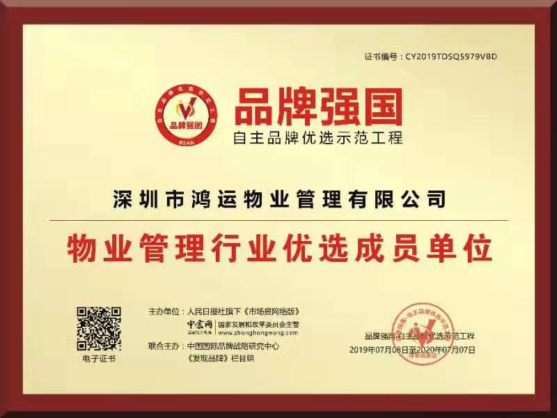 十年磨一劍,一朝試鋒芒。鴻運物業(yè)品牌建設(shè)和提質(zhì)增效工作取得顯著成績,于2018年10月至今年7月,在短短數(shù)月內(nèi),先后斬獲2018年物業(yè)服務(wù)行業(yè)中國優(yōu)選品牌、2018中國(物業(yè)管理)行業(yè)十大創(chuàng)新品牌、2018中國創(chuàng)新先鋒企業(yè)、2019年物業(yè)管理行業(yè)優(yōu)選成員單位四大獎項,鴻運物業(yè)董事總經(jīng)理陳總更是被評選為2018年中國新經(jīng)濟(年度)影響力人物。 擇優(yōu)而選,彰顯實力與口碑 2018年9月,經(jīng)由中國優(yōu)選品牌促進發(fā)展工程深圳地區(qū)組委會實地調(diào)查和嚴格篩選,“鴻運物業(yè)”脫穎而出,被評選為物業(yè)服務(wù)行業(yè)中國優(yōu)選品牌,獲得央視CCTV《發(fā)現(xiàn)品牌》欄目報道,同時公司信息有幸刊登在中國優(yōu)選品牌促進發(fā)展工程官方網(wǎng)站上。 突破創(chuàng)新,贏得專家和市場肯定 2019年1月,鴻運物業(yè)陳總受邀作為行業(yè)代表嘉賓,在北京人民大會堂參加2019中國新經(jīng)濟品牌峰會暨創(chuàng)新榜樣巡禮活動會議,被現(xiàn)場授予2018中國(物業(yè)管理)行業(yè)十大創(chuàng)新品牌、2018中國創(chuàng)新先鋒企業(yè)的獎?wù)?,以表彰鴻運物業(yè)在中國物業(yè)行業(yè)上的創(chuàng)新投入。 銳意進取,推動中國品牌崛起 2019年7月,鴻運物業(yè)協(xié)助國家發(fā)改委、人民日報社,推動品牌強國計劃、自主品牌優(yōu)選示范工程。鴻運物業(yè)作為物業(yè)管理行業(yè)全國首家入圍品牌強國計劃,與支付寶、碧桂園、恒大集團、格力等強勢占領(lǐng)稀缺性資源,緊跟國家政策推動品牌戰(zhàn)略方針,謀跨越、促升級、破壁壘、猛崛起。 未來,鴻運物業(yè)將再接再...