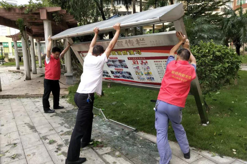 臺(tái)風(fēng)過(guò)境后,鴻運(yùn)物業(yè)應(yīng)急隊(duì)隊(duì)員及工作人員一起清理小區(qū)