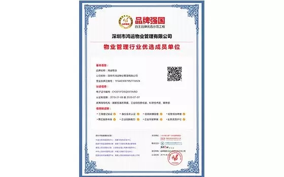 ?????? 鴻運(yùn)物業(yè)經(jīng)過資質(zhì)審核、輿情監(jiān)控等層層篩選,成功入選為品牌強(qiáng)國示范工程物業(yè)管理行業(yè)優(yōu)選成員單位,企業(yè)信息錄入品牌強(qiáng)國示范工程數(shù)據(jù)庫,在國家級平臺向公眾展示品牌形象。