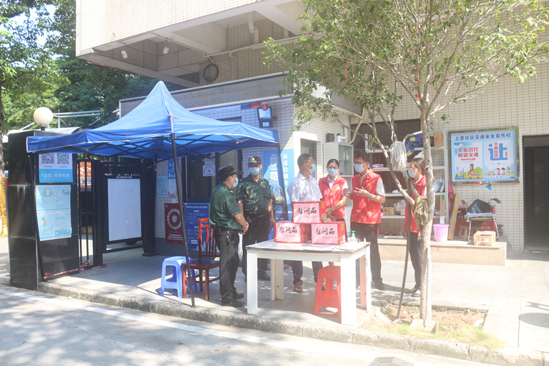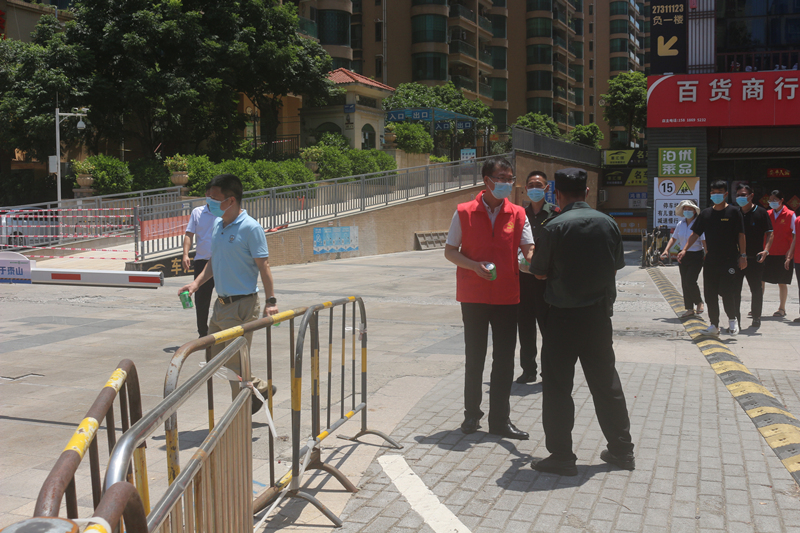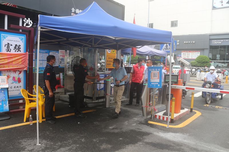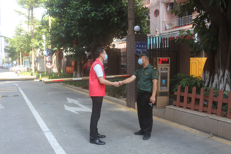 ? ? ? ?在人流量較大的沙頭舊村卡口,我們見(jiàn)到了保安員耐心指引無(wú)法打開(kāi)健康碼的居民,保證卡口暢通不擁堵;在鴻德園卡口,我們見(jiàn)到了保安員為沒(méi)有佩戴口罩的老人送上口罩;在盛芳園卡口,我們見(jiàn)到了保安員耐心與外賣員溝通,為其解釋新下達(dá)的外賣員快遞員不能進(jìn)入小區(qū)的規(guī)定;在麒麟花園卡口,我們見(jiàn)到了保安員奔跑到烈日下,細(xì)致查驗(yàn)車中人員的健康碼……