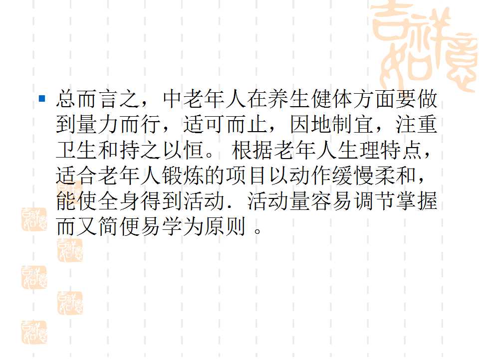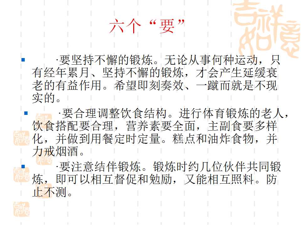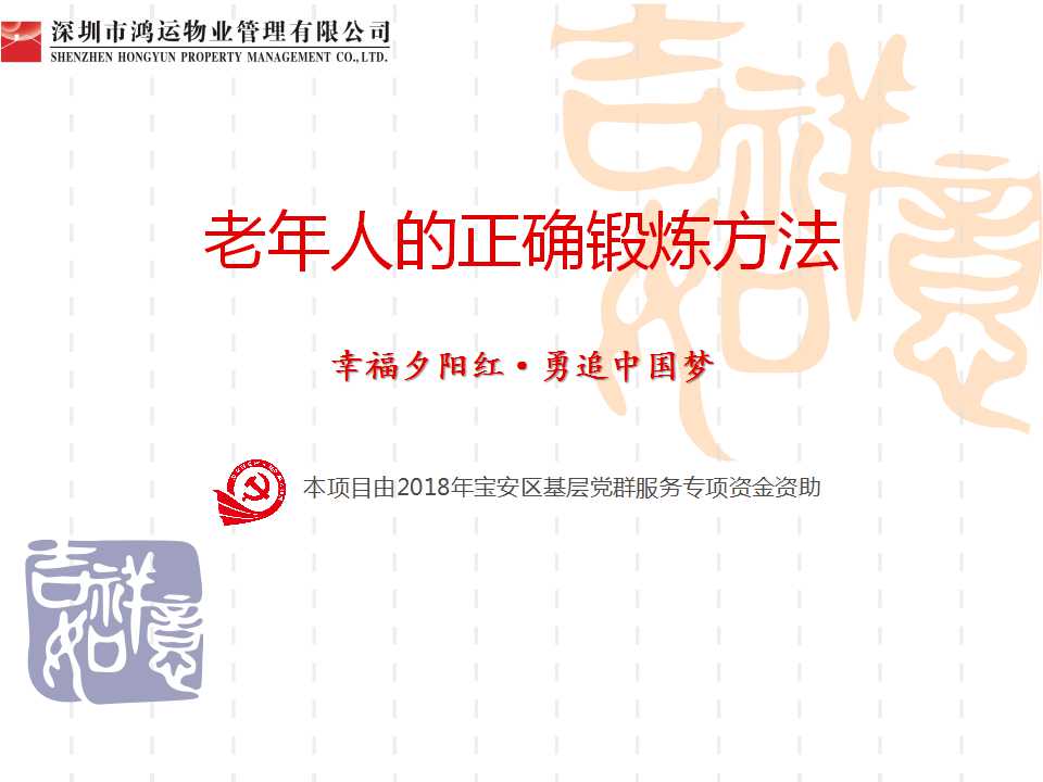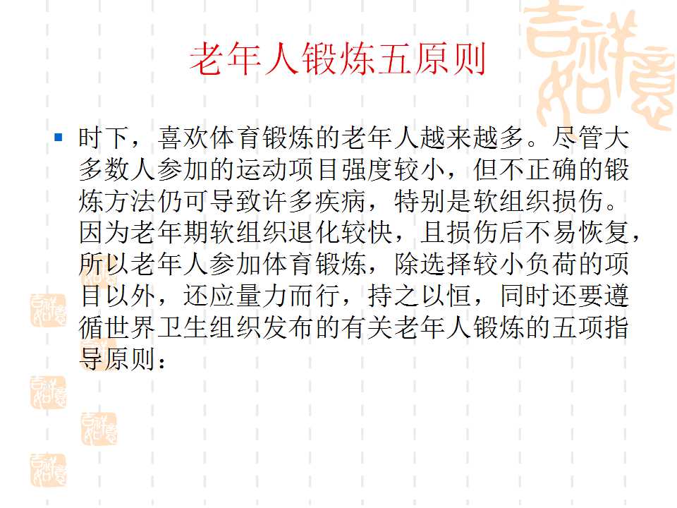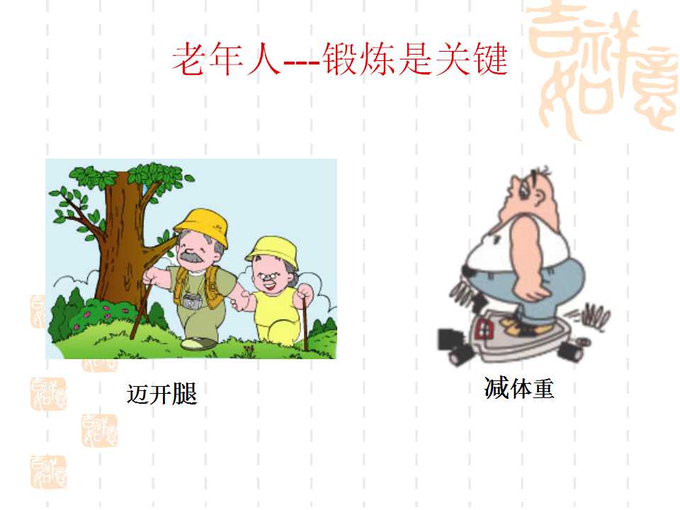 點擊下方鏈接,可進入百度網(wǎng)盤,下載“幸福夕陽紅·勇追中國夢”項目老人健身PPT課件。