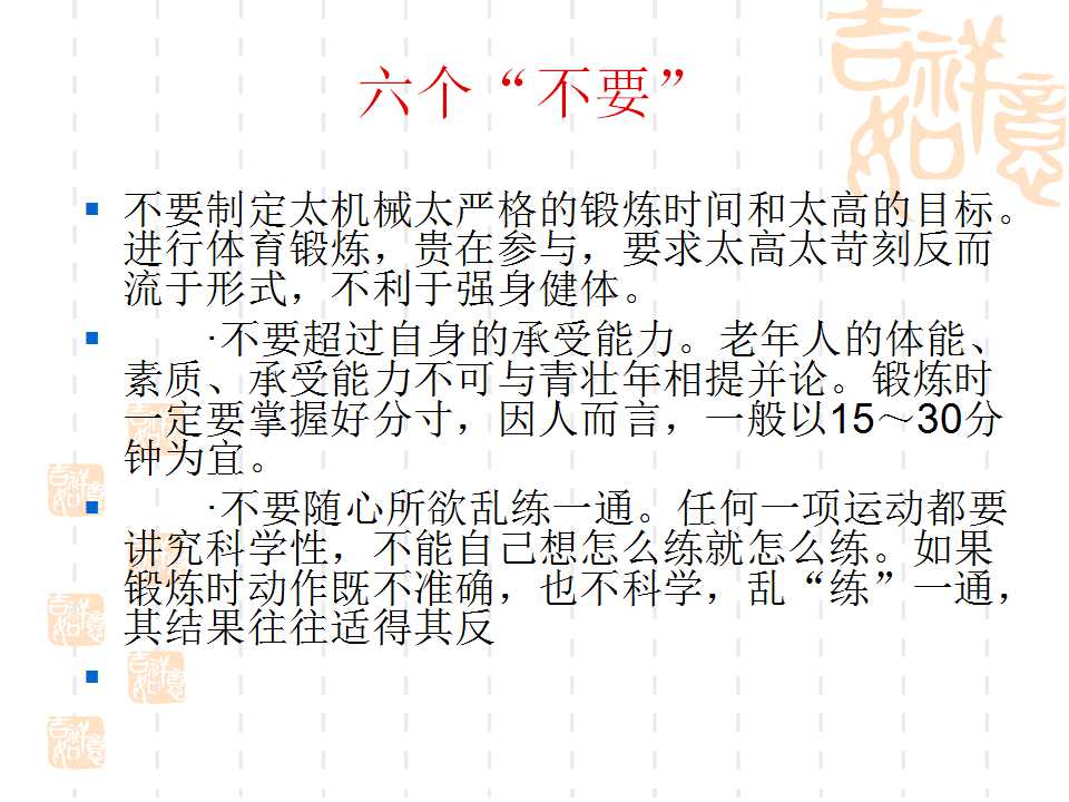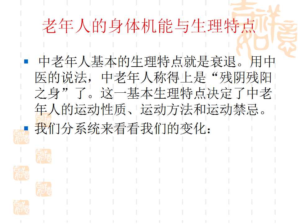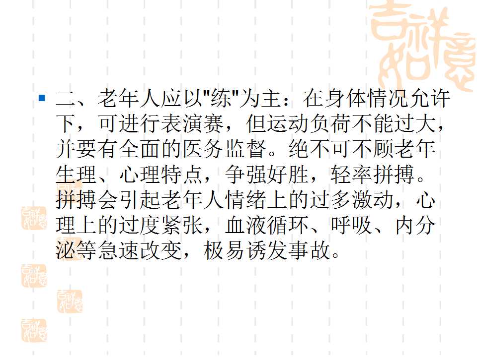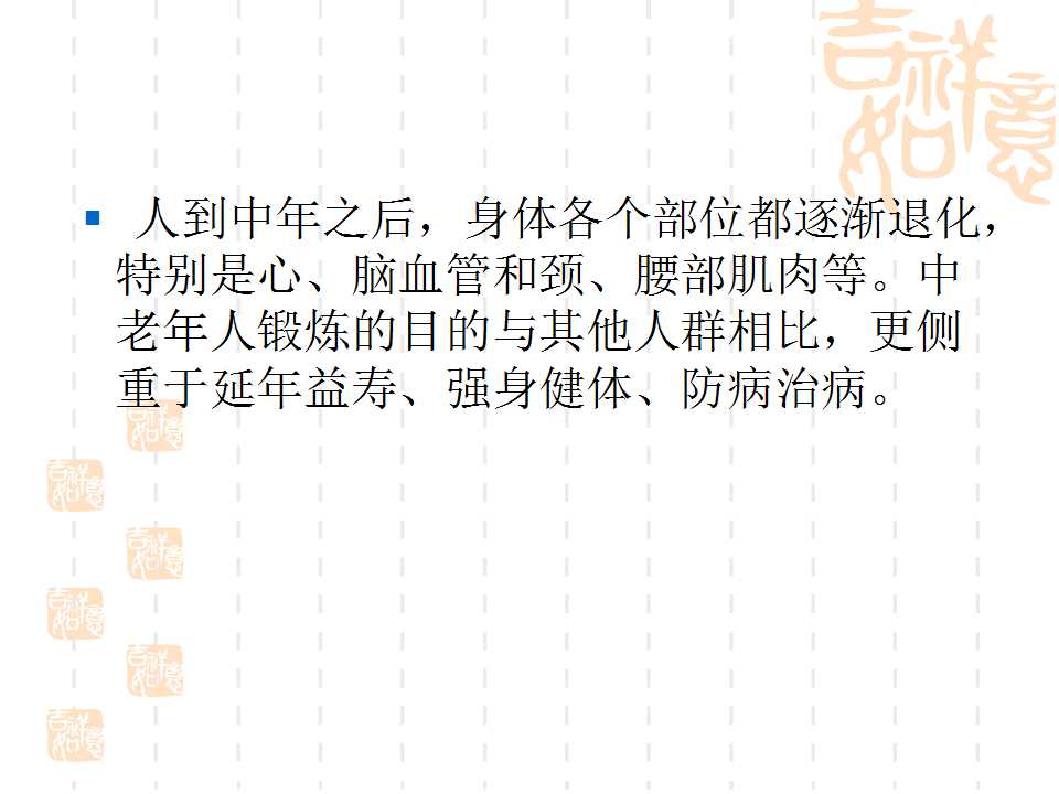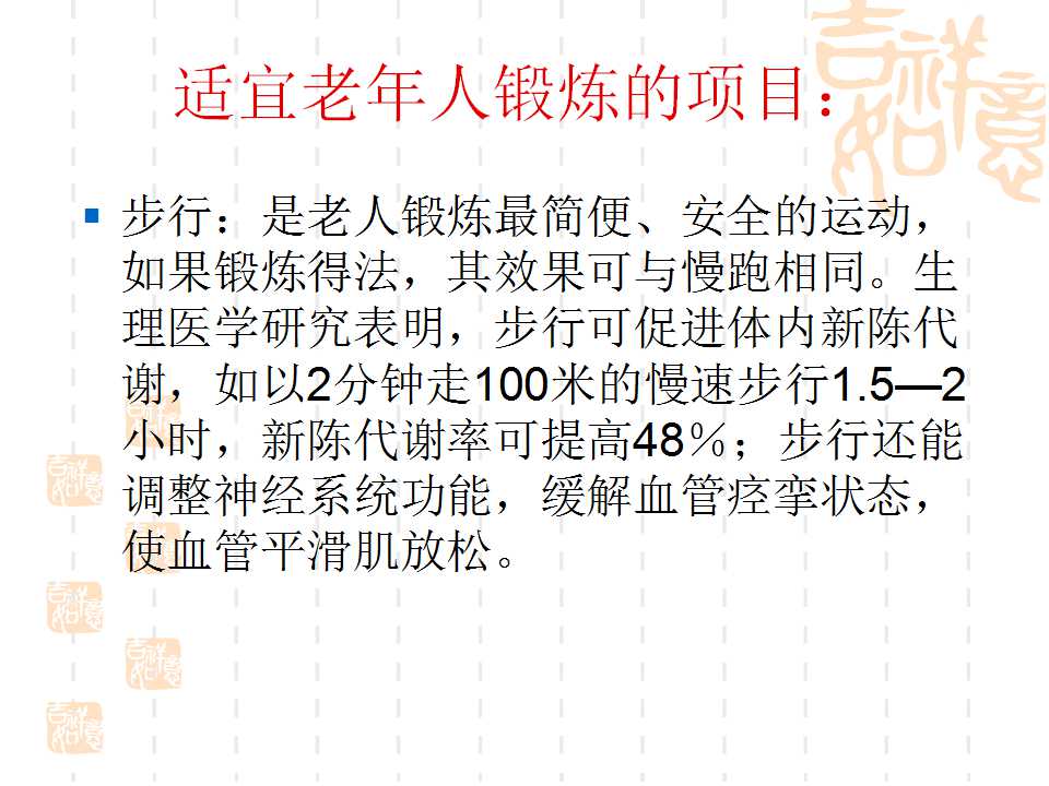 點擊下方鏈接,可進入百度網(wǎng)盤,下載“幸福夕陽紅·勇追中國夢”項目老人健身PPT課件。