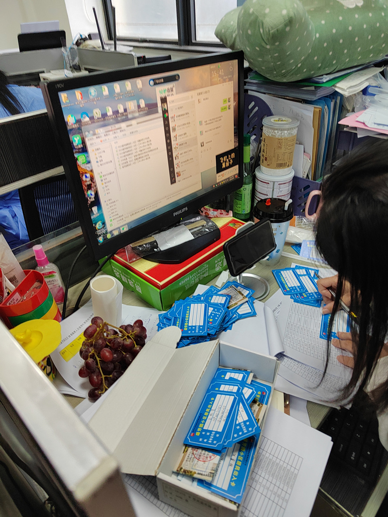 ? ? ? 為做好充足的解封準備,鴻運物業(yè)沙頭物業(yè)服務(wù)中心的保安員們頂著雨通宵拆除臨時圍合柵欄,鴻運物業(yè)盛芳園物業(yè)服務(wù)中心的客服們和社區(qū)工作者加班加點制作全小區(qū)2000多戶居民的出入卡。