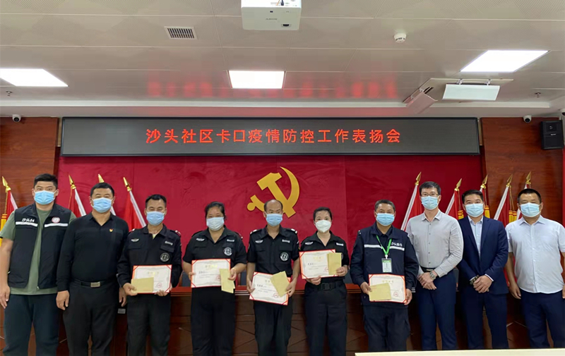 ? ? ? 3月30日晚,區(qū)委領(lǐng)導暗訪城中村卡口驗碼情況,鴻運物業(yè)管理的沙頭舊村是抽查的10個小區(qū)中,唯一做到了場所碼和行程碼同查的小區(qū)。3月31日,沙頭社區(qū)黨委對鴻運物業(yè)沙頭物業(yè)服務(wù)中心在疫情防控工作中表現(xiàn)突出的5名保安員(李勝明、胡國平、史軍華、李艷華、劉有剛)給予表彰,對鴻運物業(yè)在此輪疫情中的緊急響應、積極作為、務(wù)實擔當給予大力贊揚。